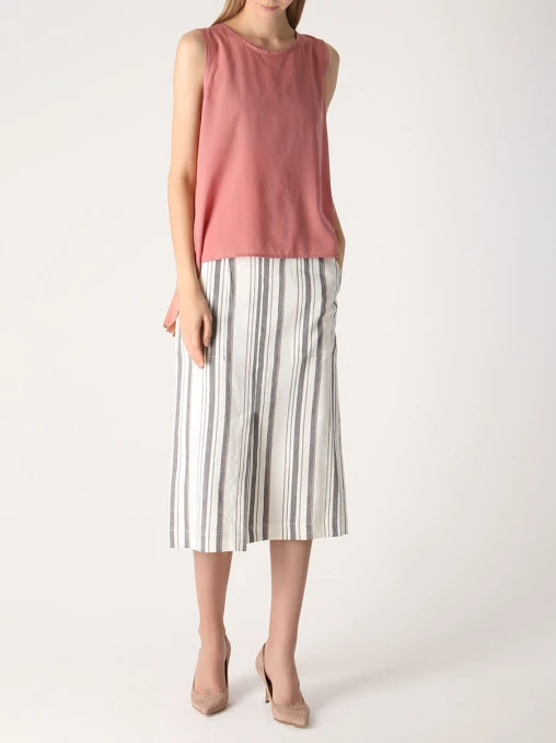 -Розовый топ с плиссе от BEATRICE. -Свободный силуэт, ассиметричный крой, круглый вырез горловины, вертикальная плиссированная вставка на спинке.