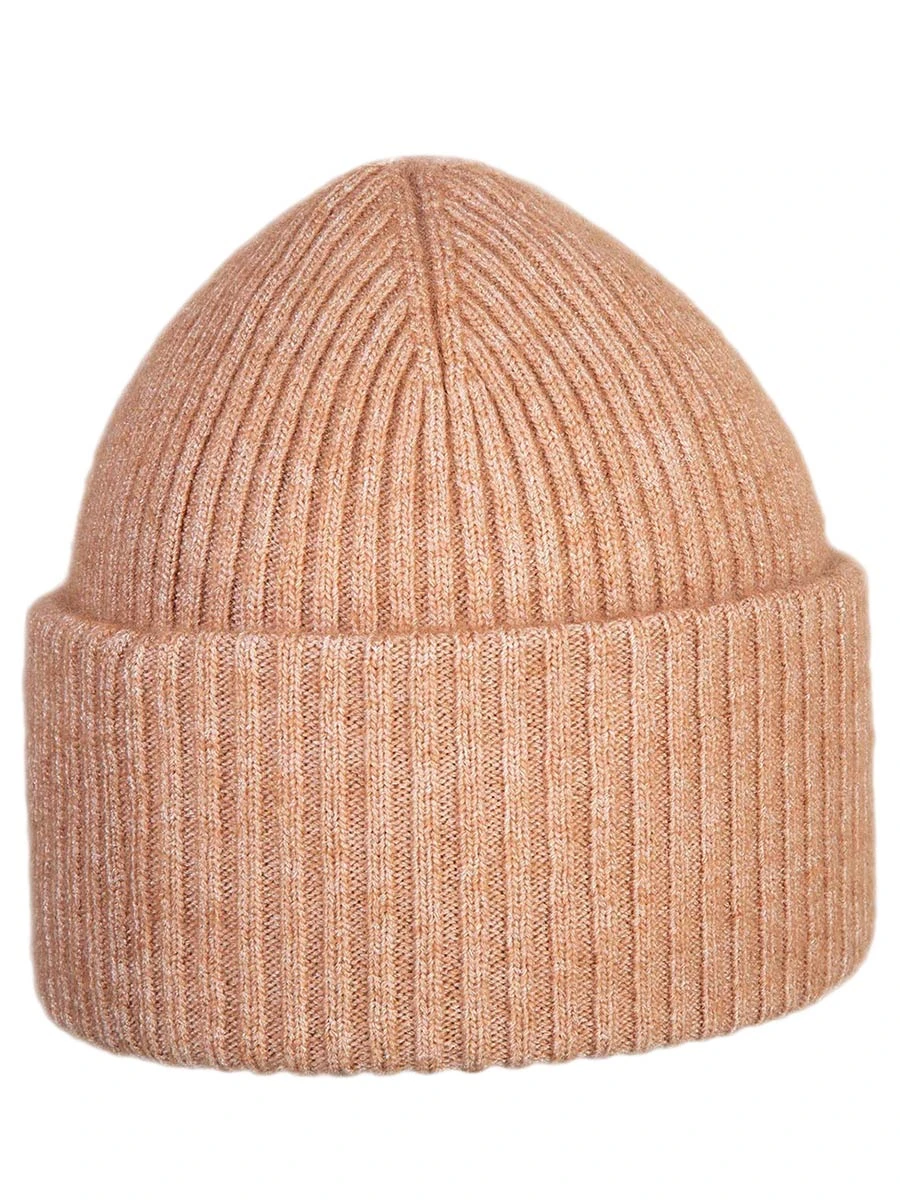 -Бежевая вязаная шапка из пряжи купажированного состава от CANOE.