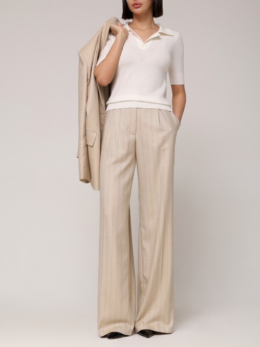 -Базовое поло из бамбукового волокна в молочном цвете от JULIAKISELEVA. -Модель полуприлегающего силуэта с короткими рукавами, отложным воротником, эластичными манжетами и поясом, лаконичной вышивкой с логотипом, V-образным вырезом на груди и застежкой на пуговицу. -Поло дополнит повседневные образы с джинсами, брюками и базовыми кедами.